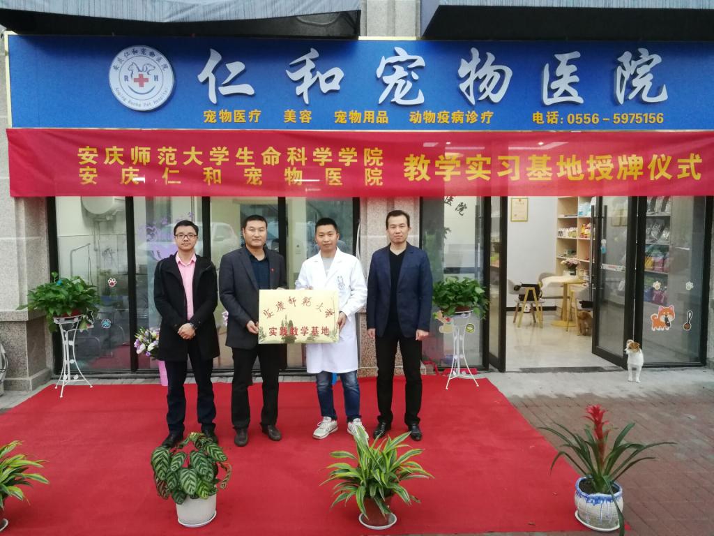 10月26日,betway西汉姆联平台在周多奇经理的带领下,来到位于安庆本土的仁和宠物医院,参加了公司与仁和宠物医院的实践教学基地的揭牌仪式。