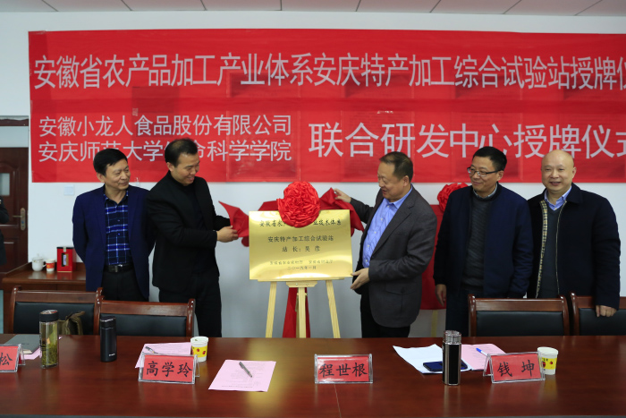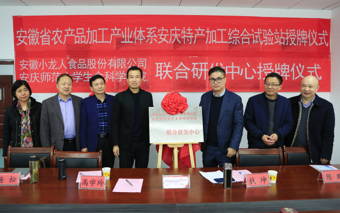 3月29日,betway西汉姆联平台举行安徽省农产品加工产业体系安庆特产加工综合试验站授牌仪式暨betway西汉姆联平台与安徽小龙人食品股份有限公司联合研发中心授牌仪式。安徽省农业农村厅科技教育处处长程世根,安徽省农产品加工产业技术体系首席专家钱坤、安徽小龙人食品股份有限公司总经理李志兴等企业人员与betway西汉姆联平台负责人参加授牌仪式。仪式由betway西汉姆联平台党委书记吴甘霖主持。