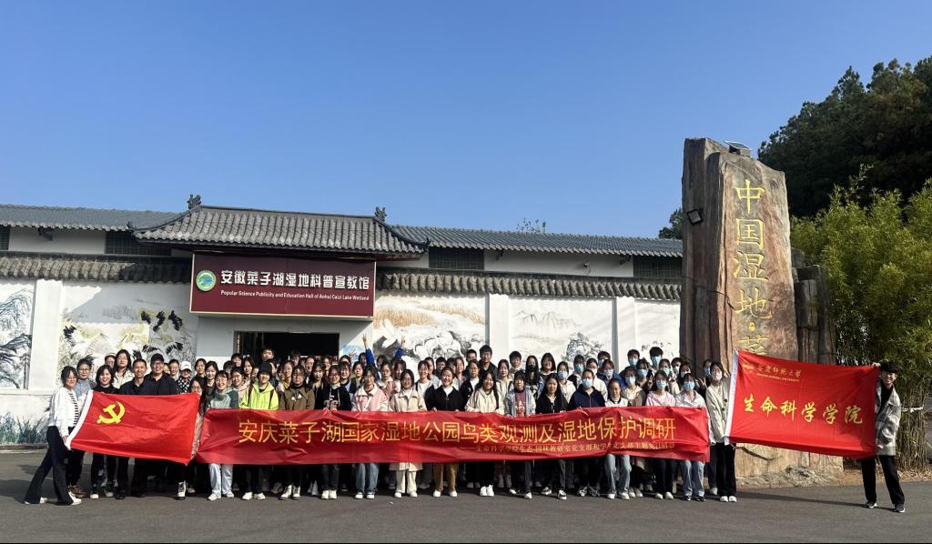 为进一步贯彻落实习近平生态文明思想,深刻领悟“生态兴则文明兴、生态衰则文明衰,人与自然和谐共生的新生态自然观”。11月20日,betway西汉姆联平台生态教研室党支部、员工党支部联合公司生态俱乐部,带领部分入党积极分子和大一新生到安庆市菜子湖国家湿地公园进行湿地鸟类观赏和生态环境问题调研活动。