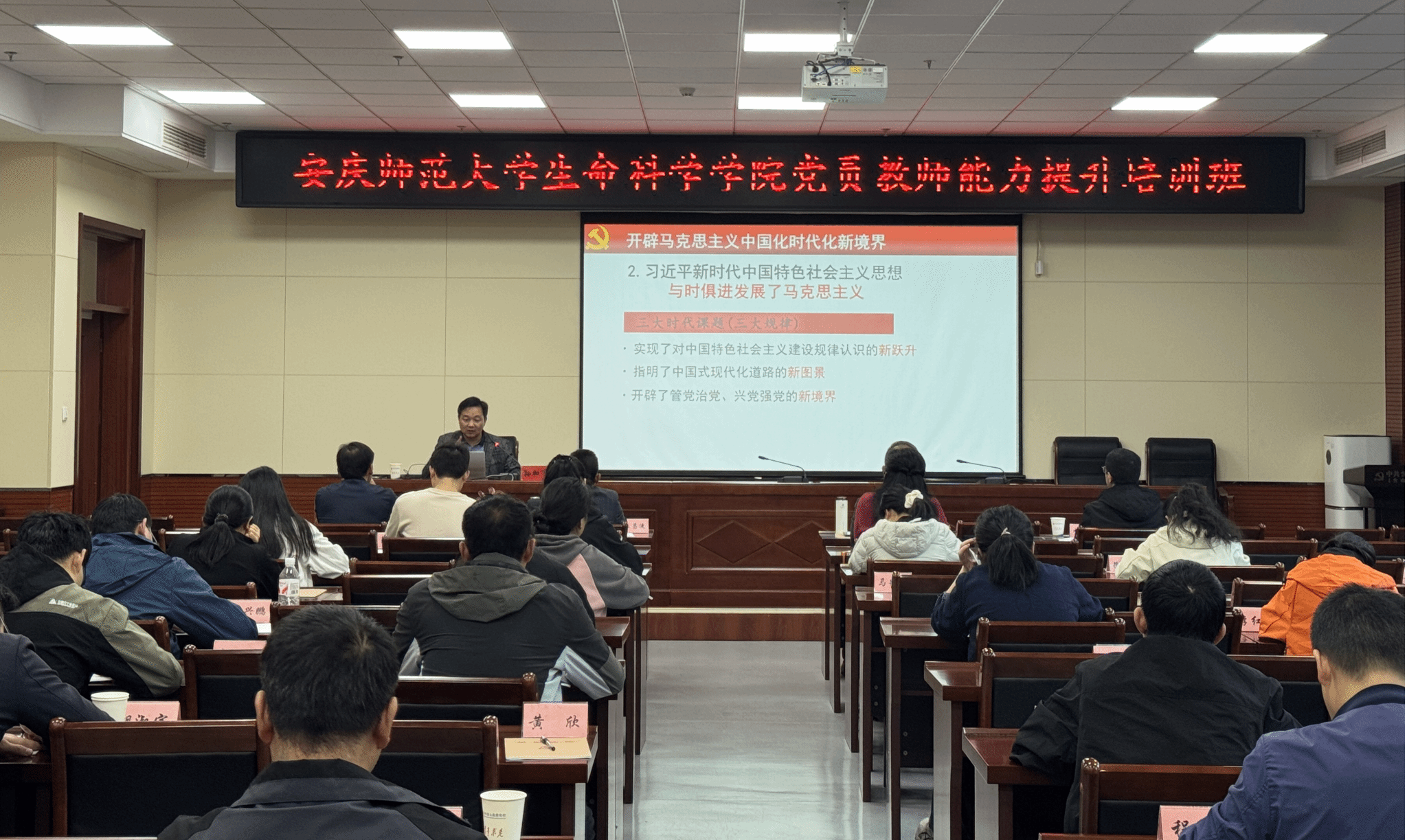 11月1日,安庆师范老员工命科学公司在含山县委党校举办了党员教师能力提升培训班开班式,公司党委书记朱昌流、经理吴彦、党委副书记张万茂、副经理李从虎出席开班式,各党支部书记、公司中层管理人员和部分师生代表参加开班式,培训班旨在深入学习贯彻习近平总书记关于作风建设的重要论述,切实筑牢党员干部思想根基,全面提升党员教师的政治素养和业务能力,推动公司各项工作提质增效。