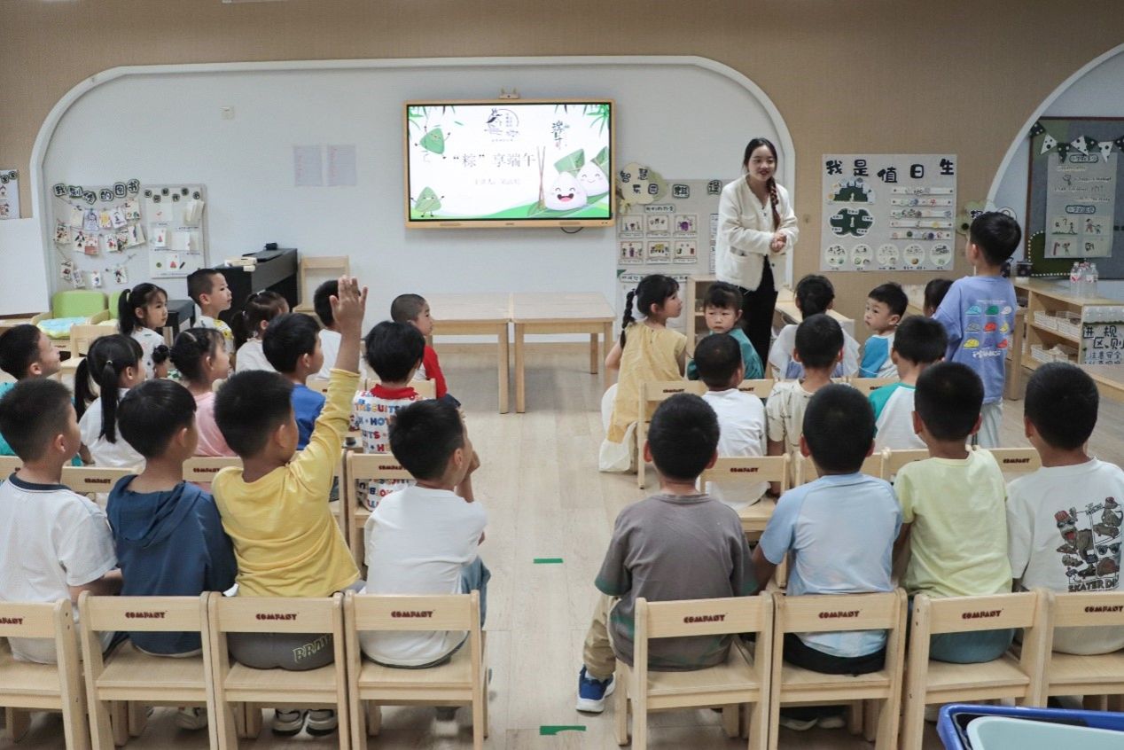 各色的香包、可爱的粽子玩具、寓意祥和的五彩绳……琳琅满目的小礼物吸引了小朋友的目光。在协会各理事的引导下,小朋友排起长队,按顺序进行套圈游戏。“今天特别开心,因为我套中了一个粽子香包,挂香包是端午节的传统习俗之一,我回家就要把它挂起来!”大一班的小朋友连云起表示,自己今天学到很多端午节的知识,还学会了包粽子,收获满满。