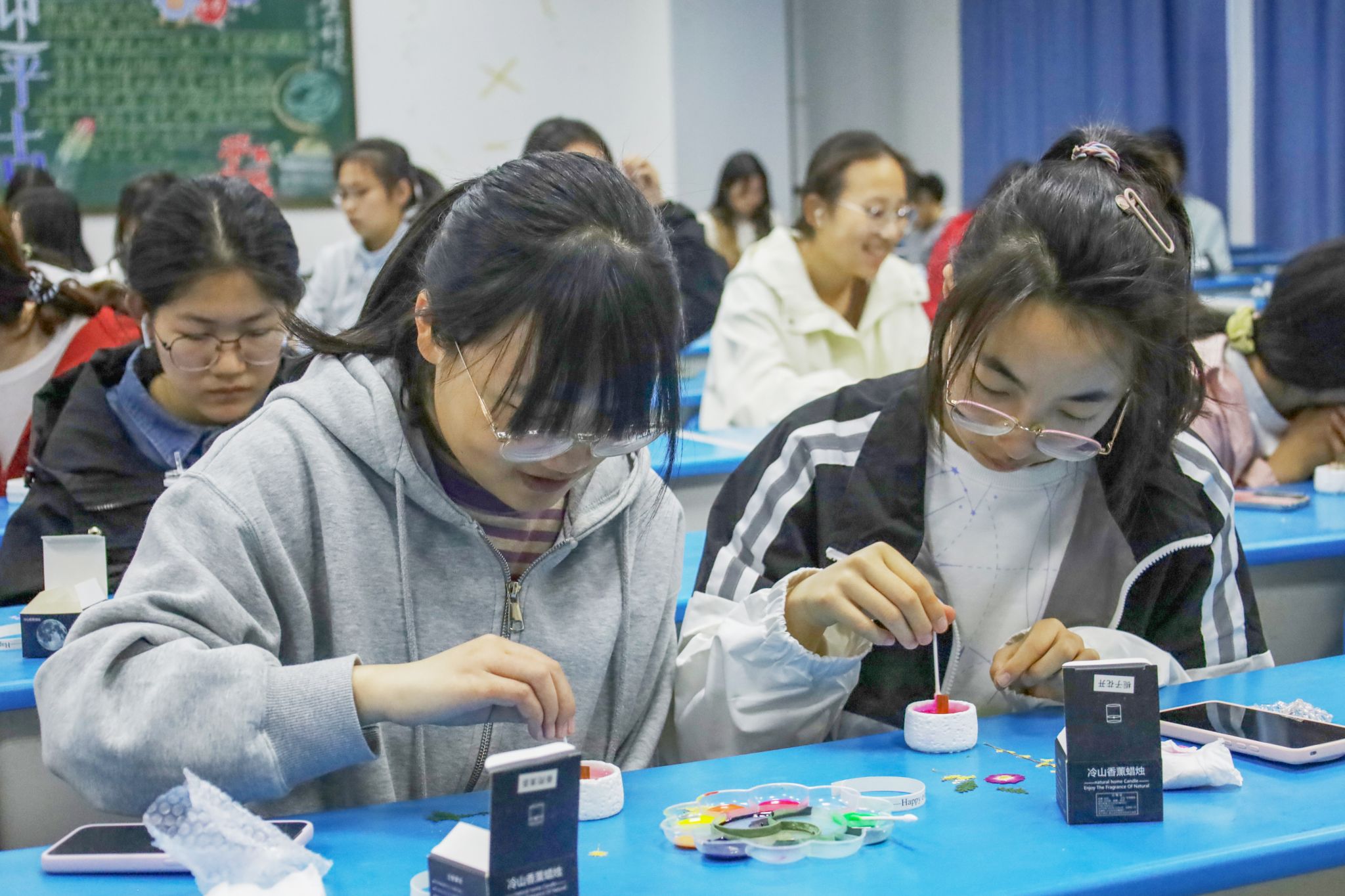 “请大家关闭手机提示音,专注感受蜡液流动的温度。”活动现场工作人员、生物科学类专业2024(4)班的方雅莉进行了开场引导,为活动注入独特的仪式感。教室里,搅拌蜡液的沙沙声、轻声交流的欢笑与淡淡的植物清香交织,构成了独特的“疗愈场”。