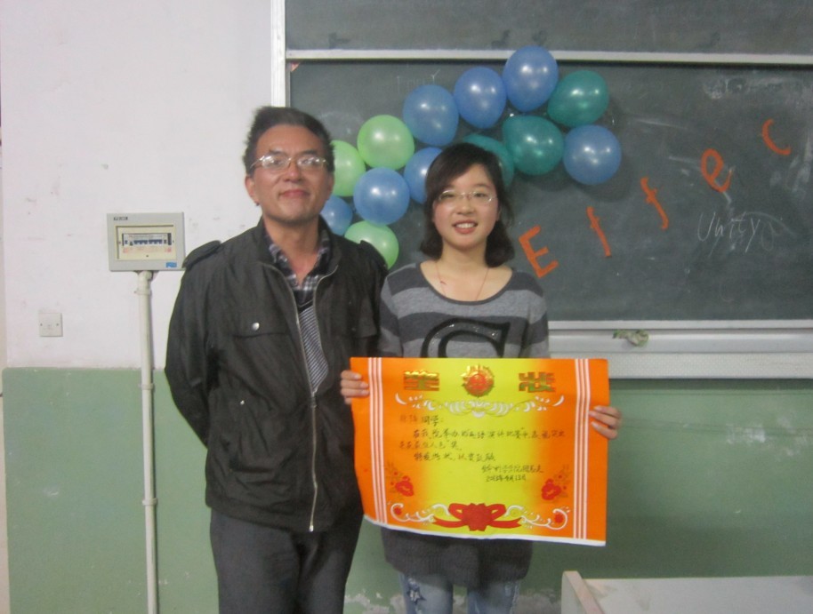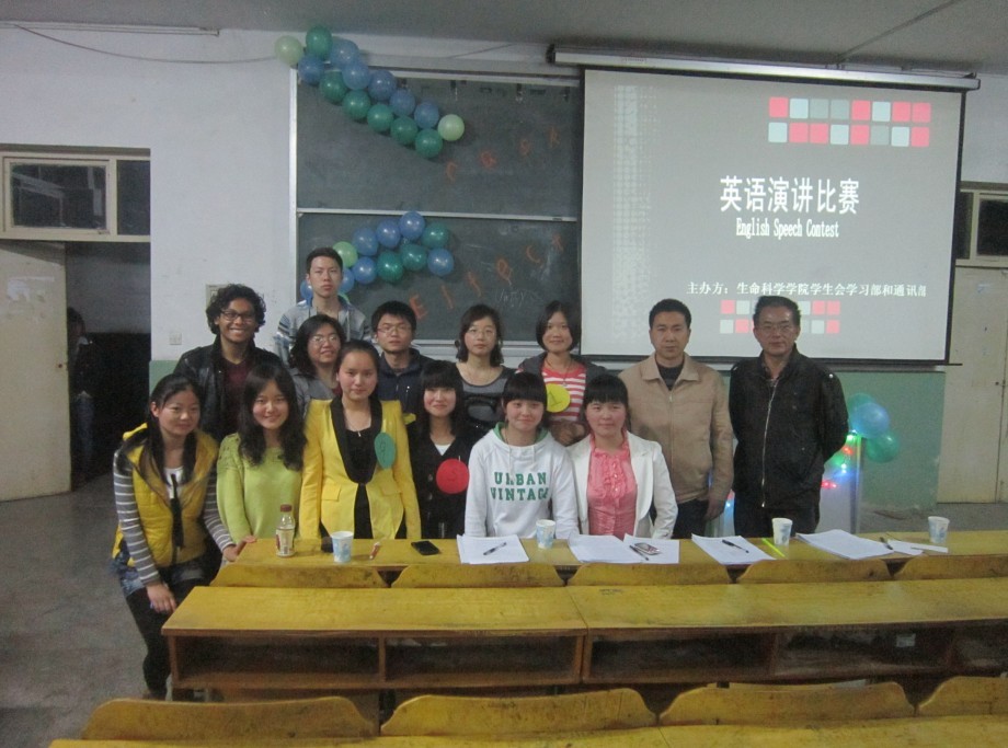 此次比赛共有12名选手参与角逐,比赛过程十分精彩。赛程分为两个环节,第一环节以“木桶效应”为主题,每位选手进行限时5分钟的演讲,选手们演讲内容精彩,立意新颖,尤其是十一号选手陶敢争同学以“元芳此事你怎么看”为关键词的演讲,语言细腻,发音标准,博得现场评委和观众的一致好评;第二环节选手两两一组以指定题目现场进行模拟对话,选手们表现灵活,气氛活泼,特别是俞雅文同学故意把Chris的年龄说成了30岁,突然“长了8岁”的Chris在场边大呼无奈,逗乐了大家。比赛结果,11级生科1班张扬同学获得第一名,其他5名同学分获第二、三名。赛后,Chris老师和魏和平经理分别就比赛过程作了精彩点评,结合选手表现提出需要改进和提高的地方,选手们听后感觉获益匪浅。