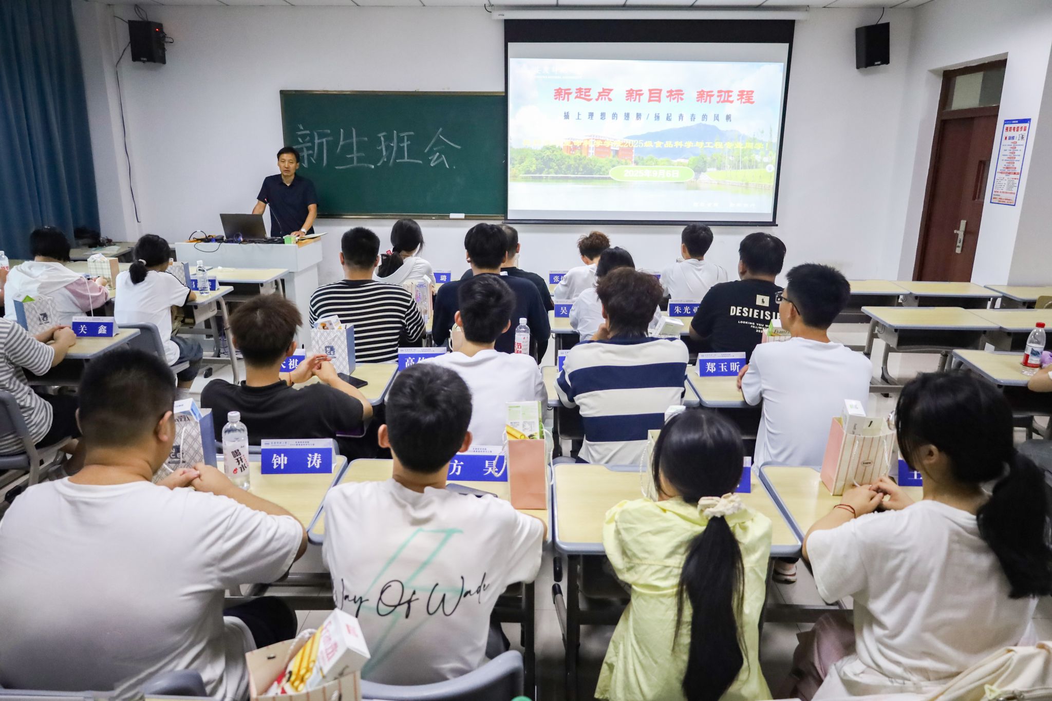 9月6日,安庆师范老员工命科学公司食品科学与工程专业2025级的30名新生齐聚一堂,一场别开生面的新生班会于k503举行。与传统班会不同,这场由新生辅导员张万茂主持的班会,因“席卡首用”“六样定制礼物”等创新设计,让刚入校园的新生倍感温暖,也为他们的老员工活埋下“严而有爱”的伏笔。