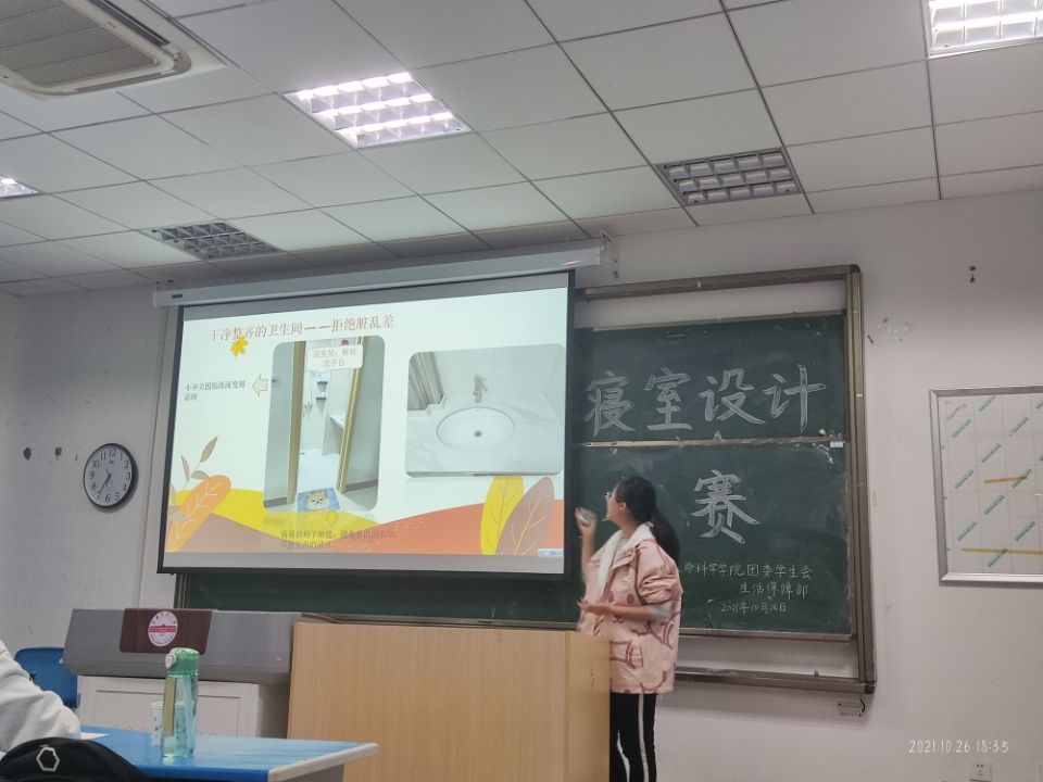 为了促进良好室风建设,强化良好卫生习惯养成,提高寝室生活质量,培养同学间团结合作精神,betway西汉姆联平台于10月26日下午在G103教室举办了“我居我饰”寝室设计大赛总决赛。