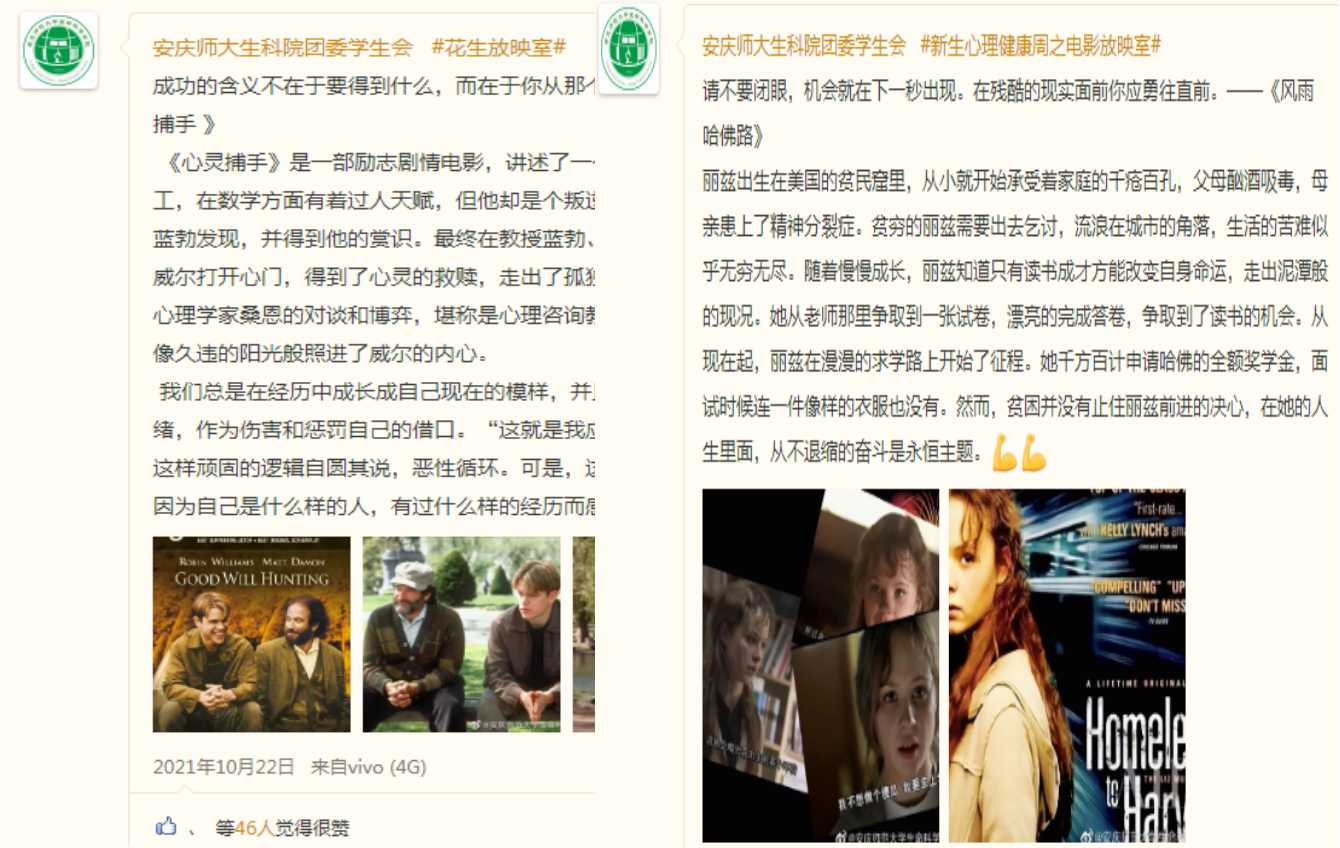 在心理健康周期间,betway西汉姆联平台团委员工会官方QQ在活动期间每天推荐一部与心理健康相关的电影,分享的影片有《心灵捕手》、《心灵奇旅》、《风雨哈佛路》和《凯蒂和爷爷》等等。通过介绍影片内容,宣传心理健康知识。