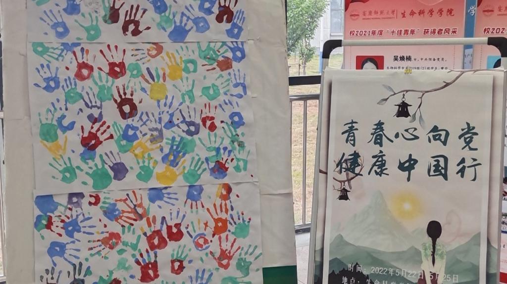 红色、蓝色、绿色……白色的海报纸上很快就布满了大大小小色彩斑斓的“手掌”。5月25日中午12点,心理健康中心在公司大厅摆放好空白海报纸,等待参加活动的师生用双手进行绘画。员工们用这种有趣的方式立志:一心向党,奋发图强,愿扛起肩上重任,用双手去为祖国的明天创造更多的可能。