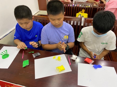 实践活动环节,在团队成员的带领和指导下,小朋友们选择自己喜欢的微生物模型,用各种颜色的黏土,对照着图片,一步一步认真地制作模型。星星型的神经细胞,逼真的病毒模型等,栩栩如生,各色各样,小朋友们也乐在其中。通过动手制作模型,他们对微生物的印象更加深刻。