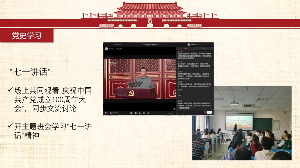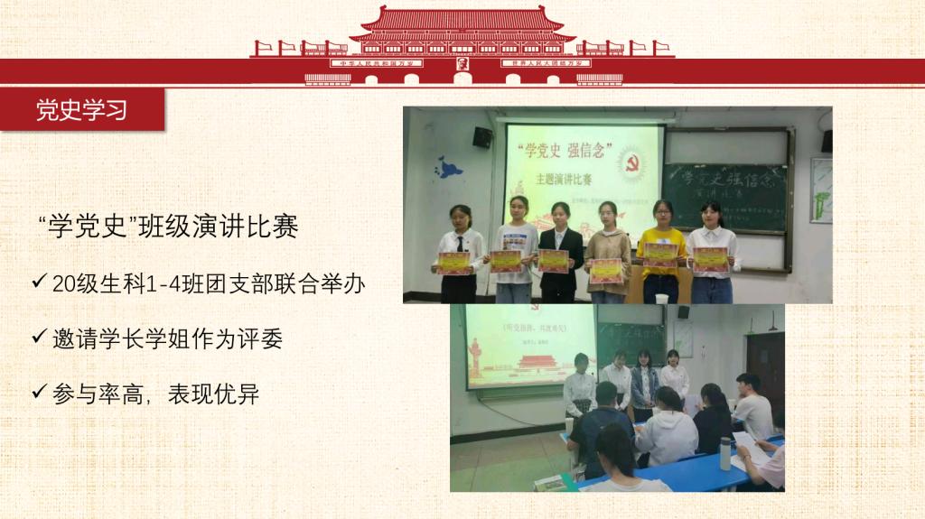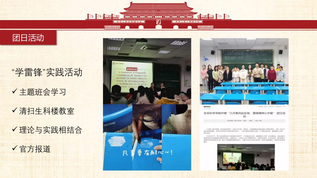 青春心向党,一起向未来。我们是来自安庆师范老员工命科学公司生物科学专业2020级2班的员工。我班团支部始终秉持着集体与个人共同发展的信念,在思想教育、学风创优、社会服务、文体艺术等多方面不断建设与发展,换来了今天这个有朝气活力、蓬勃向上、团结一致的团支部和德智体美劳全面开花的班集体。一个集体是由许多个个人组成,个人发展共同促就了集体的发展。同时集体的荣誉感与归属感也是同学们不断前进的动力之一。 习近平总书记曾说过:“未来属于青年,希望寄予青年。”我们2020级生科2班团支部的同学们积极学习党史团史,提升政治素养,夯实专业基础,并将理论付诸于行动,经常开展实践活动、投身社会志愿服务等等,获得了许多瞩目的成绩。未来,前方是荆棘也好、风雨也罢,为了心中的彩虹,我们不会停止前进的脚步!