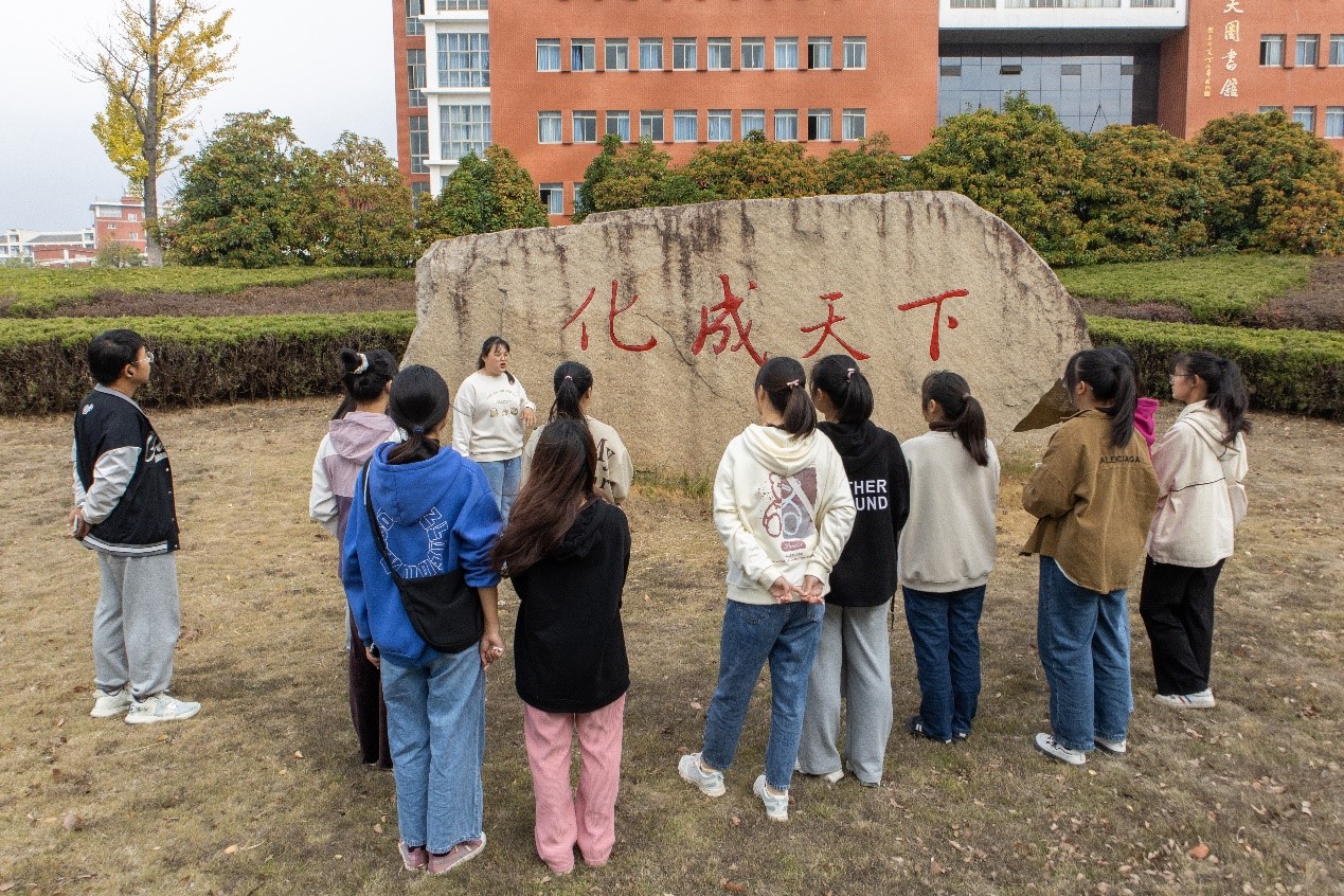 从betway西汉姆联平台出发,到音乐厅结束,生物技术专业2021(1)班的胡勤化身为“小老师”,将讲解与提问相结合,帮助新生记忆沿途植物特点。由于路线经过图书馆,她还特意讲解石碑题字“化成天下”含义,以激励新生努力学习。“和大家一起学习非常有趣,我很享受向学弟学妹讲解植物知识的过程。”