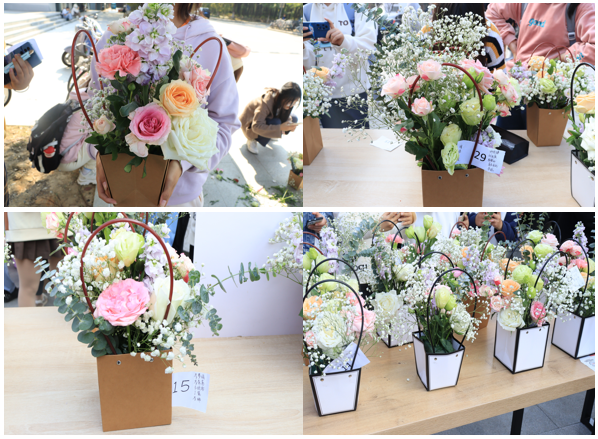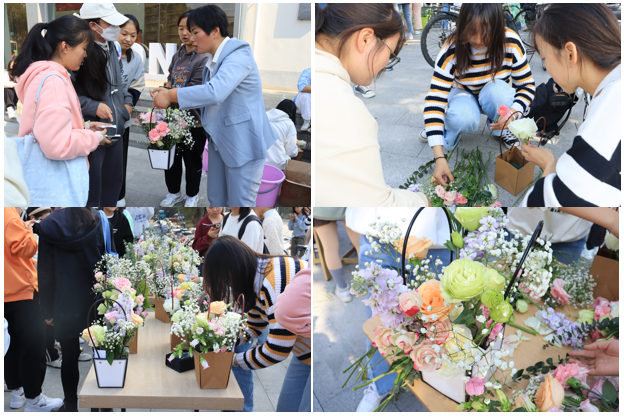 “大荔枝”“洋桔梗”“紫罗兰”“尤加利叶”…… 11月9日中午betway西汉姆联平台在东苑食堂门口举办“陌上花开,礼赞二十大”的插花活动,进一步落实《2022级新生“1+3+N”模式入学教育实施方案》,加强美育教育,用插花作品表达对党的美好祝愿。活动吸引了近200名员工参与。