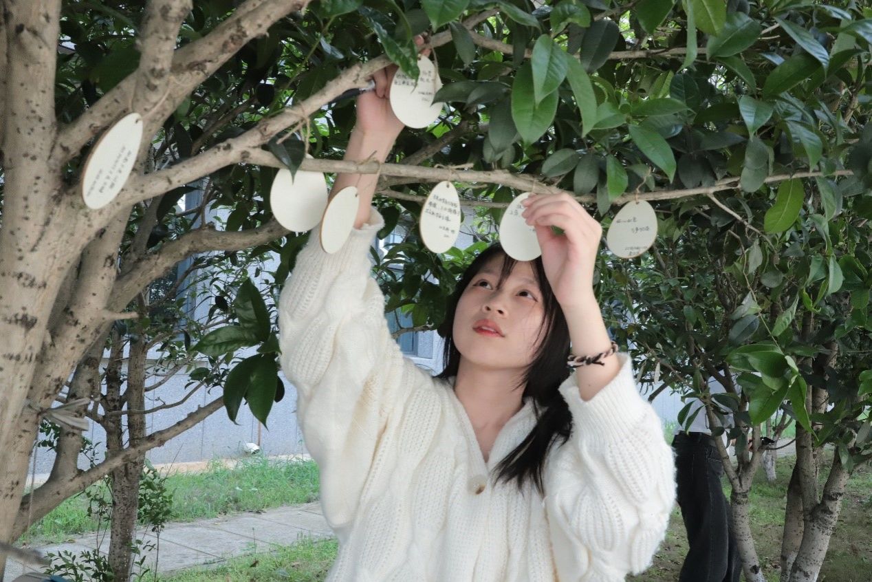 此外,公司门口的桂花树更是化身成员工心目中的“心愿树”,承载着员工的“满满心意”。生物科学专业2021(4)班的瞿佳蕊挂上了一个心愿牌,上面特意画着“考研喷雾”。她表示,她常常会看到学长学姐在公司里背书,希望心愿牌可以带来好运气,为“考研人”带来好消息。“学长学姐在路过的时候看到,也能够带着好心情进入备考状态。”