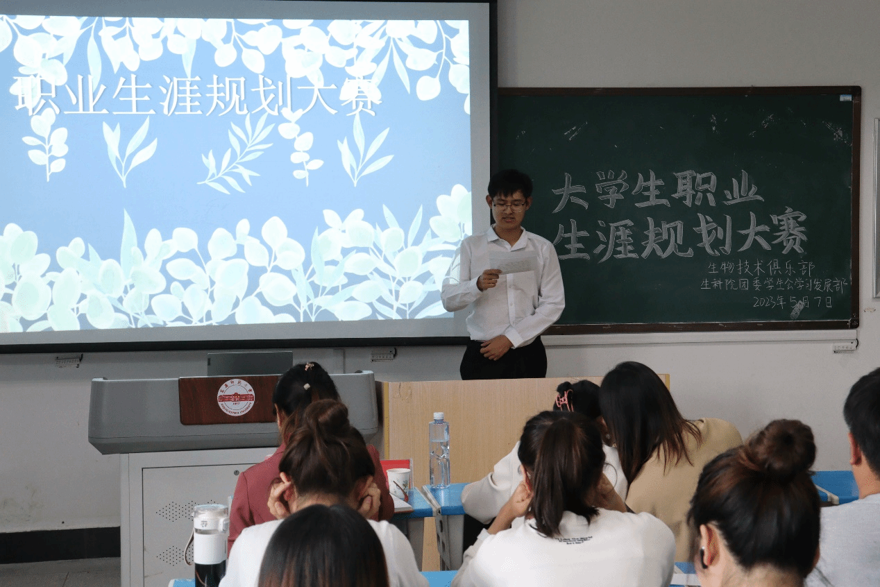 大赛共分为PPT展示和评委点评两个环节,来自2021级、2022级的10余名员工参加决赛。在PPT展示环节,每位参赛选手针对自我认知、职业认知、职业决策、计划与路径、评估与调整、职业道德等6个方面,对自己的《职业生涯规划设计书》进行具体形象的陈述。2021级生物技术专业周君以自己创立生物技术俱乐部为引线,条理清晰、循循渐进地对自己的未来进行了完整的规划;而孙太平同学则是把自己的职业生涯规划分为三部曲——自我认知、环境分析、就业前景,一步一步地描绘着自己的蓝图。2022级生物科学2班李美林以张桂梅引出自己的职业理想,通过制定短期、中期和长期规划为成为一名优秀的人民教师作铺垫。通过紧张激烈的现场展示与答辩,最终李美林凭借整体结构完整、逻辑清晰、详略得当、重点突出的作品脱颖而出,得到在场评委和同学们的一致好评,摘取了本届职业规划大赛桂冠,孙太平和周君分获二三等奖。