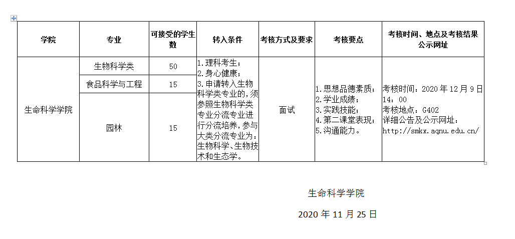二、新生转专业必须参加转入专业的综合考核,按考核成绩的名次先后,确定是否转入,具体考核内容见下表。