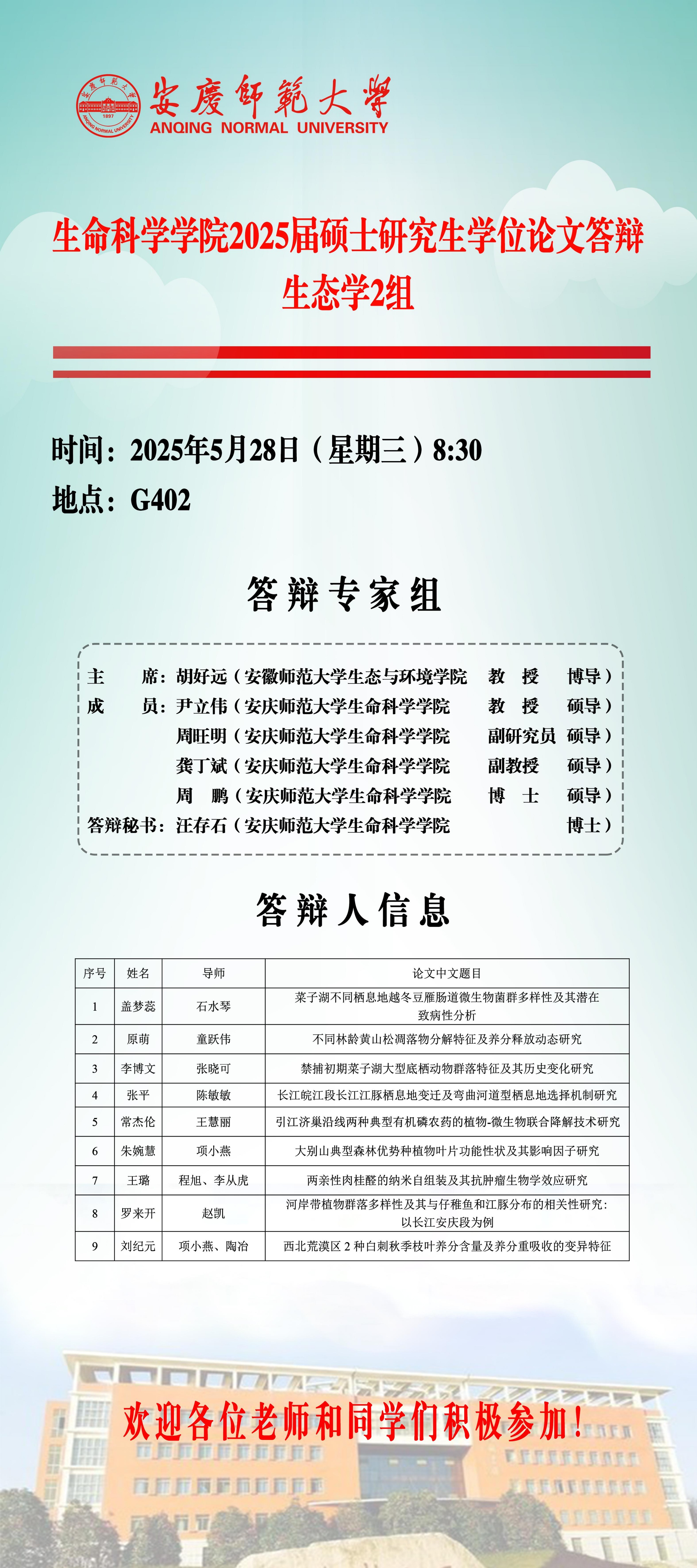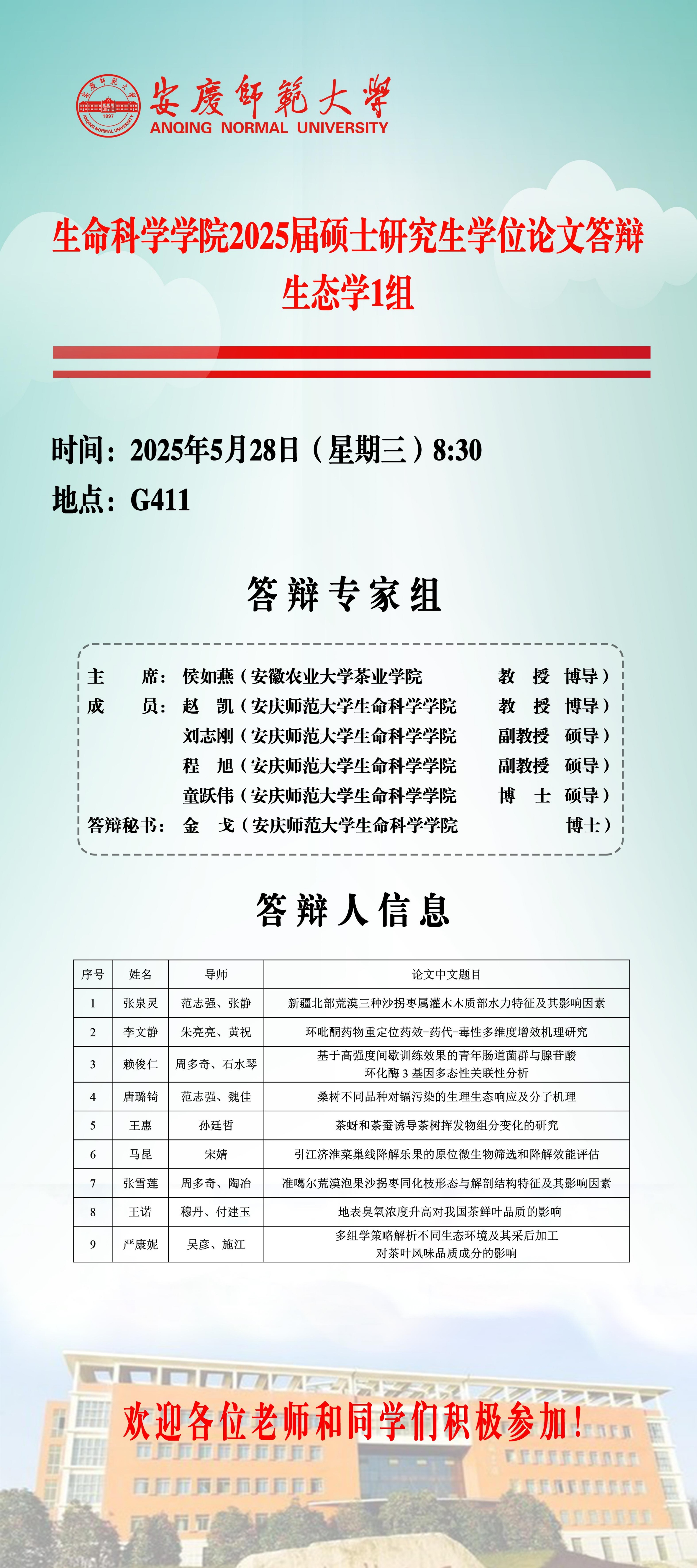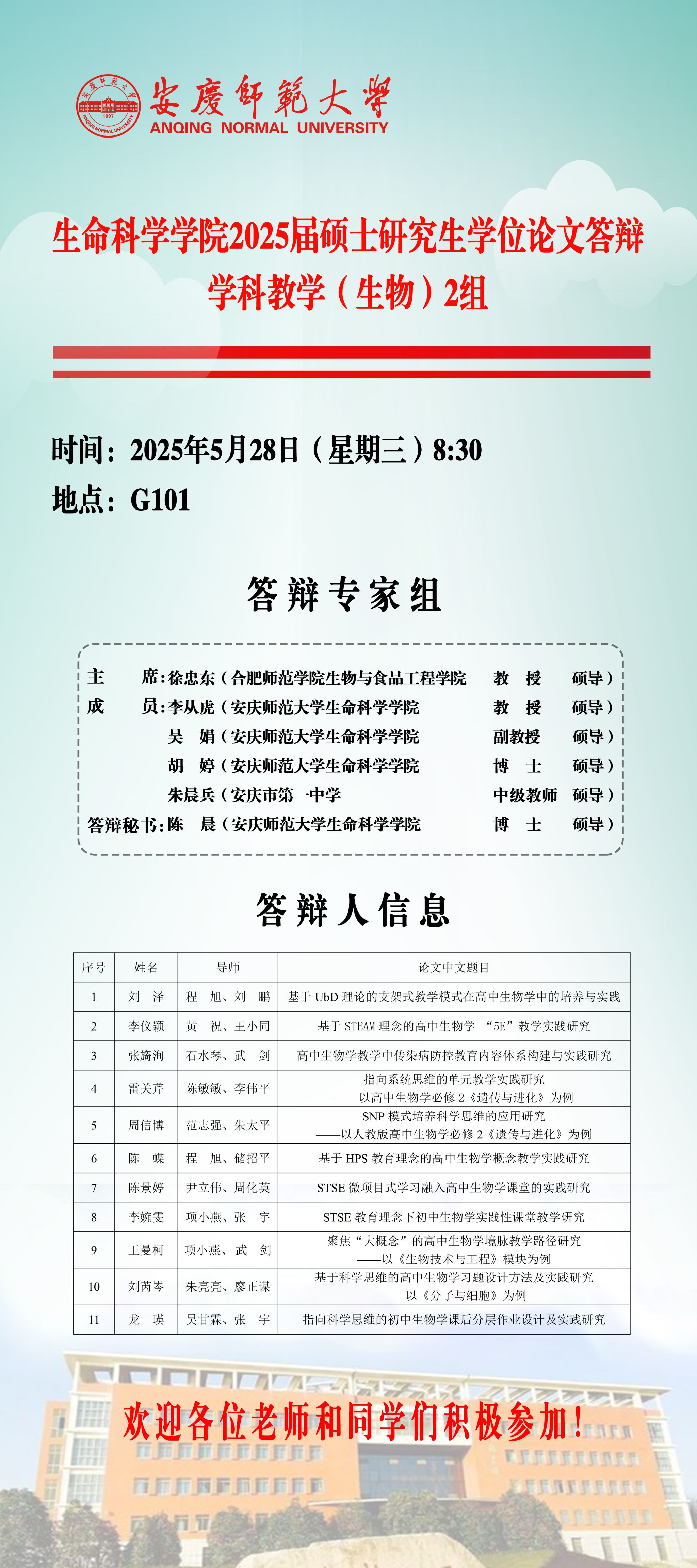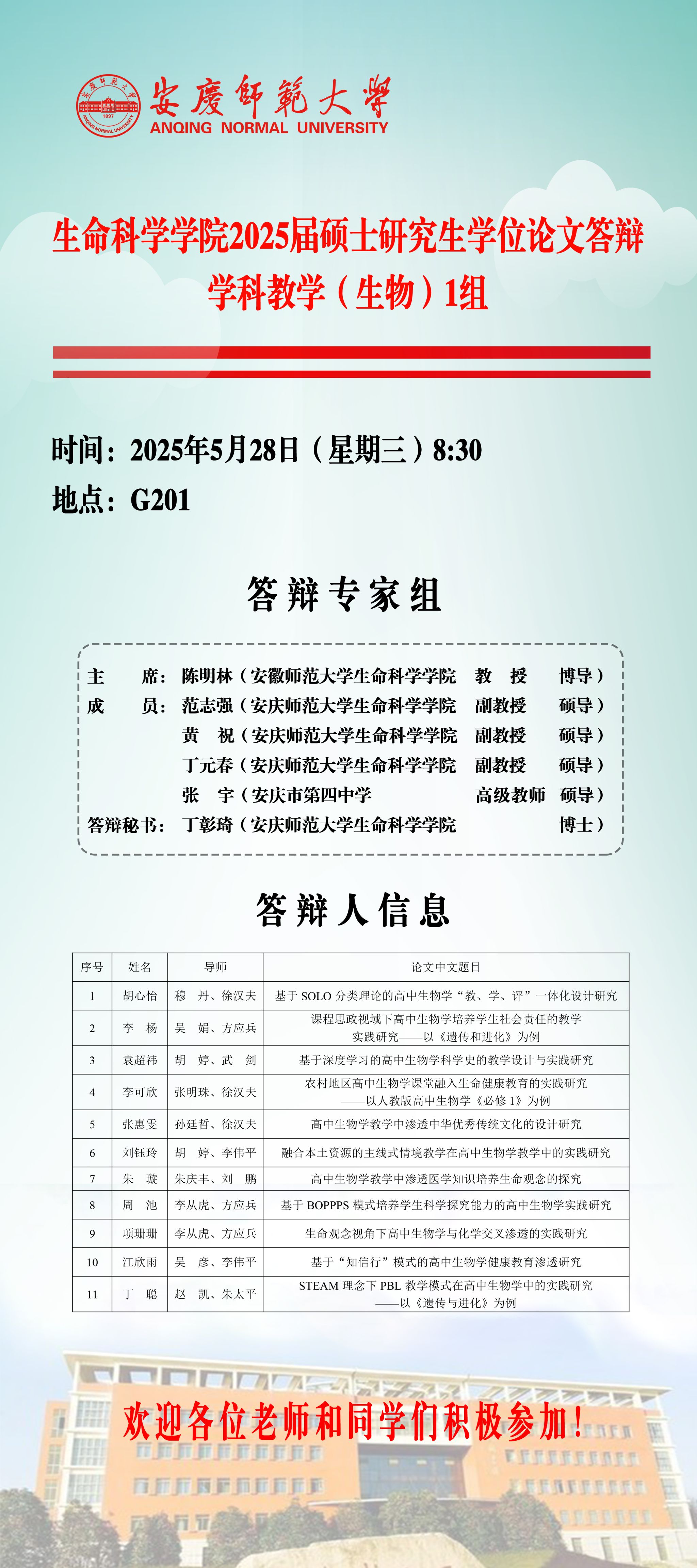 2025届硕士研究生学位论文毕业答辩安排