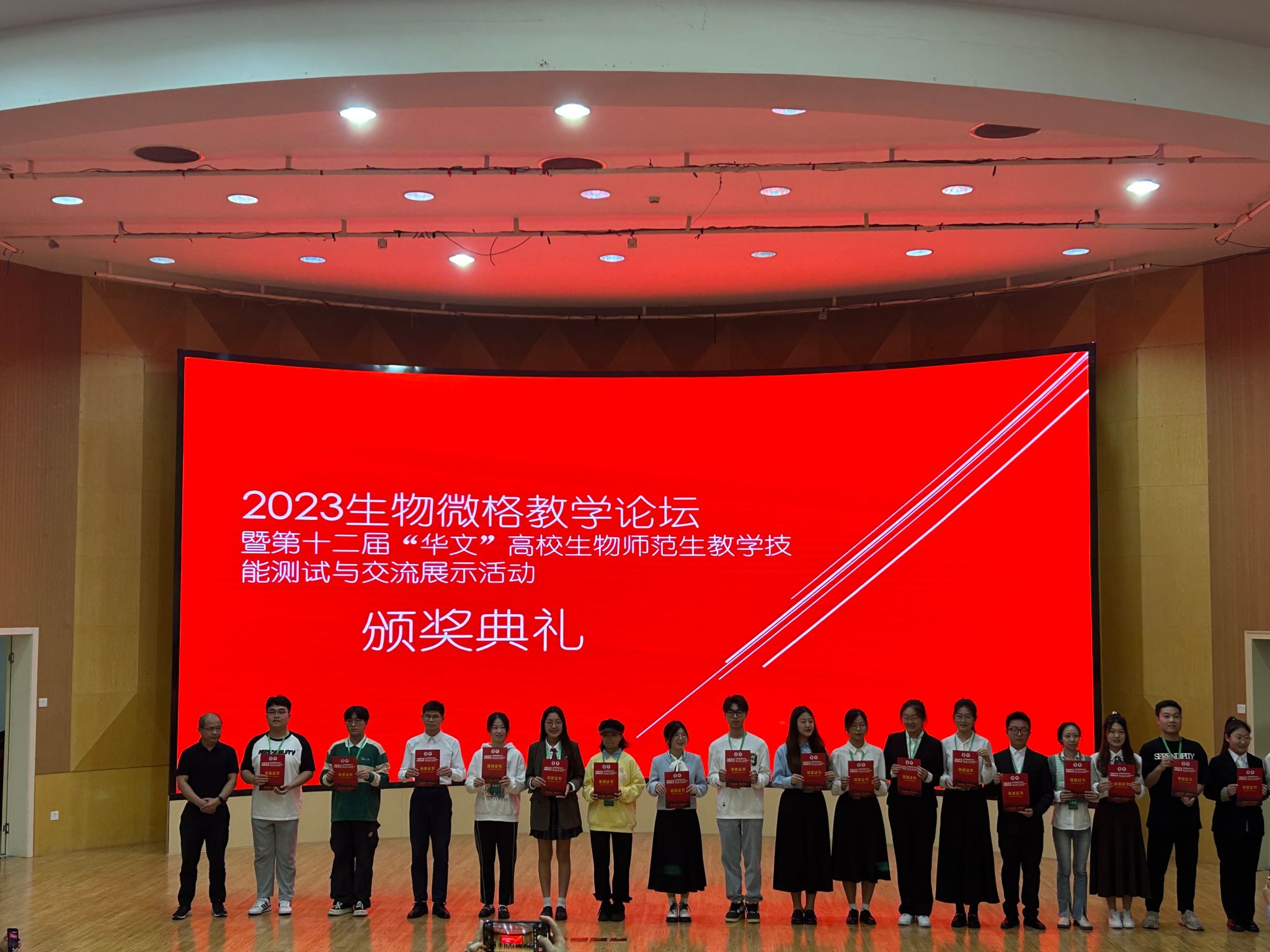 2023年10月20日—10月23日,第十二届“华文”高校生物师范生教学技能测试与交流展示活动在江西师范大学成功举办。经过初赛选拔和复赛测试,由betway西汉姆联平台选派的6名生物科学专业师范生全部获奖,共获得教学技能测试一等奖2项、二等奖2项、三等奖2项,教学设计测试二等奖5项,三等奖1项。