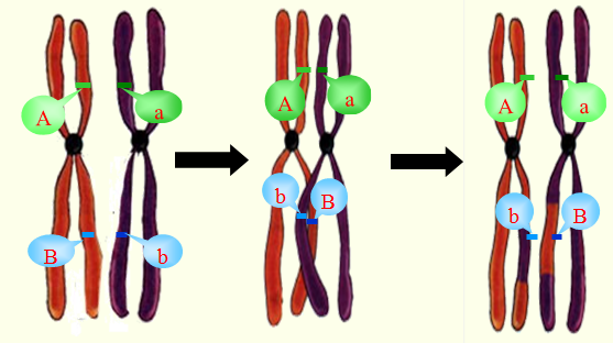 (2)交叉互换(四分体时期):同源染色体上的非姐妹染色体之间发生局部互换