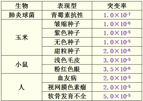 特点:①普遍性、②随机性、③_突变率低_、④多数有害、⑤不定向性。