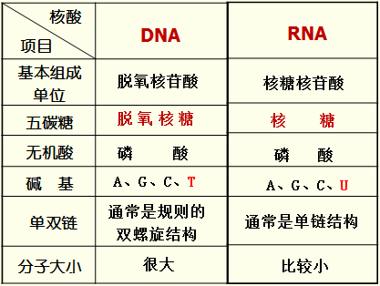②RNA一般为单链,比DNA短,能通过核孔,从细胞核转移到细胞质中。