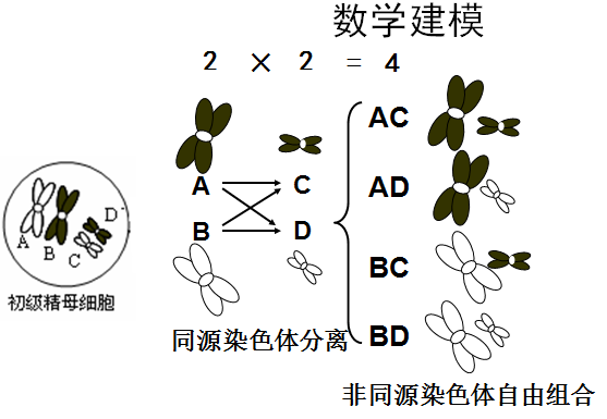 结论1:非同源染色体的自由组合导致配子染色体组合多样性