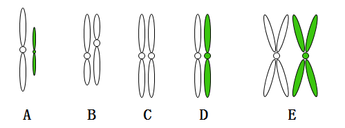 例:下列几组染色体中,属于一对同源染色体的是(DE)