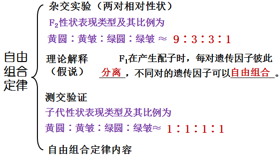 孟德尔所作的测交实验结果:我们发现无论正交还是反交,实验结果完全符合他的设想,说明他的理论推导是正确的,即F1在形成配子时,产生了四种配子,决定不同性状的遗传因子是自由组合的。
