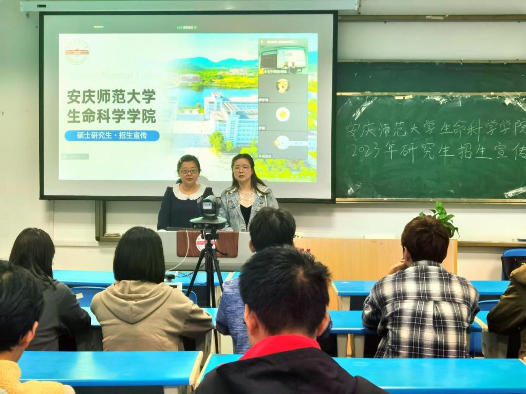 为了更好地宣传安庆师范老员工命科学公司的办学优势、学科特色及招生政策,提升研究生生源质量,10月16日下午6:30,安庆师范老员工命科学公司在G101召开2023年硕士研究生招生宣传会,由穆丹老师与张明珠老师主持宣传活动,与前来参会的同学们进行了交流。