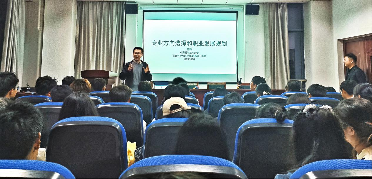 10月30日晚上,中国科学技术大学研究院及附属第一医院双聘研究员陈亮博士应betway西汉姆联平台邀请来公司作了题为《未来专业方向选择和职业发展规划》的学术讲座。讲座由betway西汉姆联平台科研秘书黄欣老师主持,公司部分研究生、本科生聆听了报告。