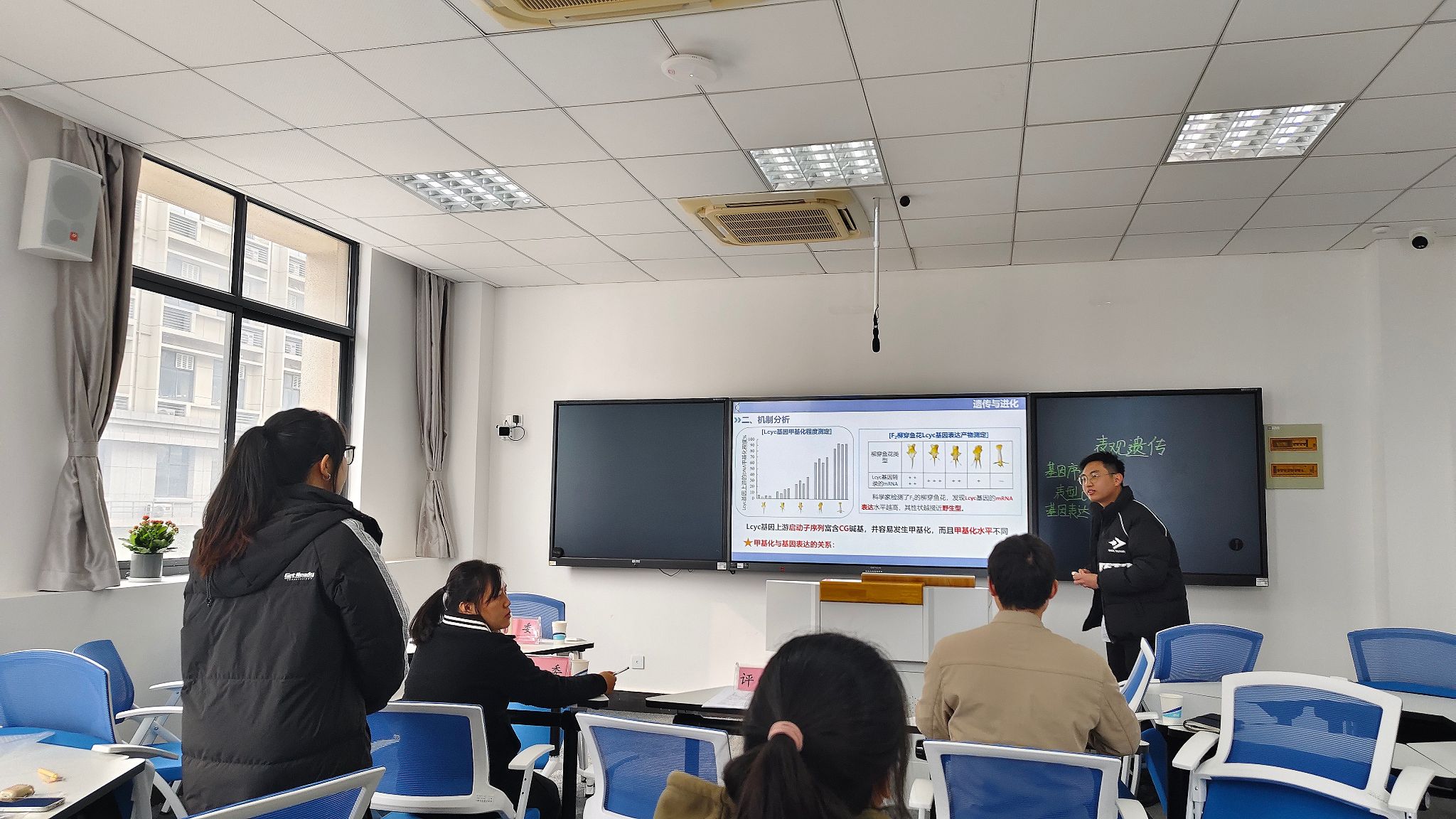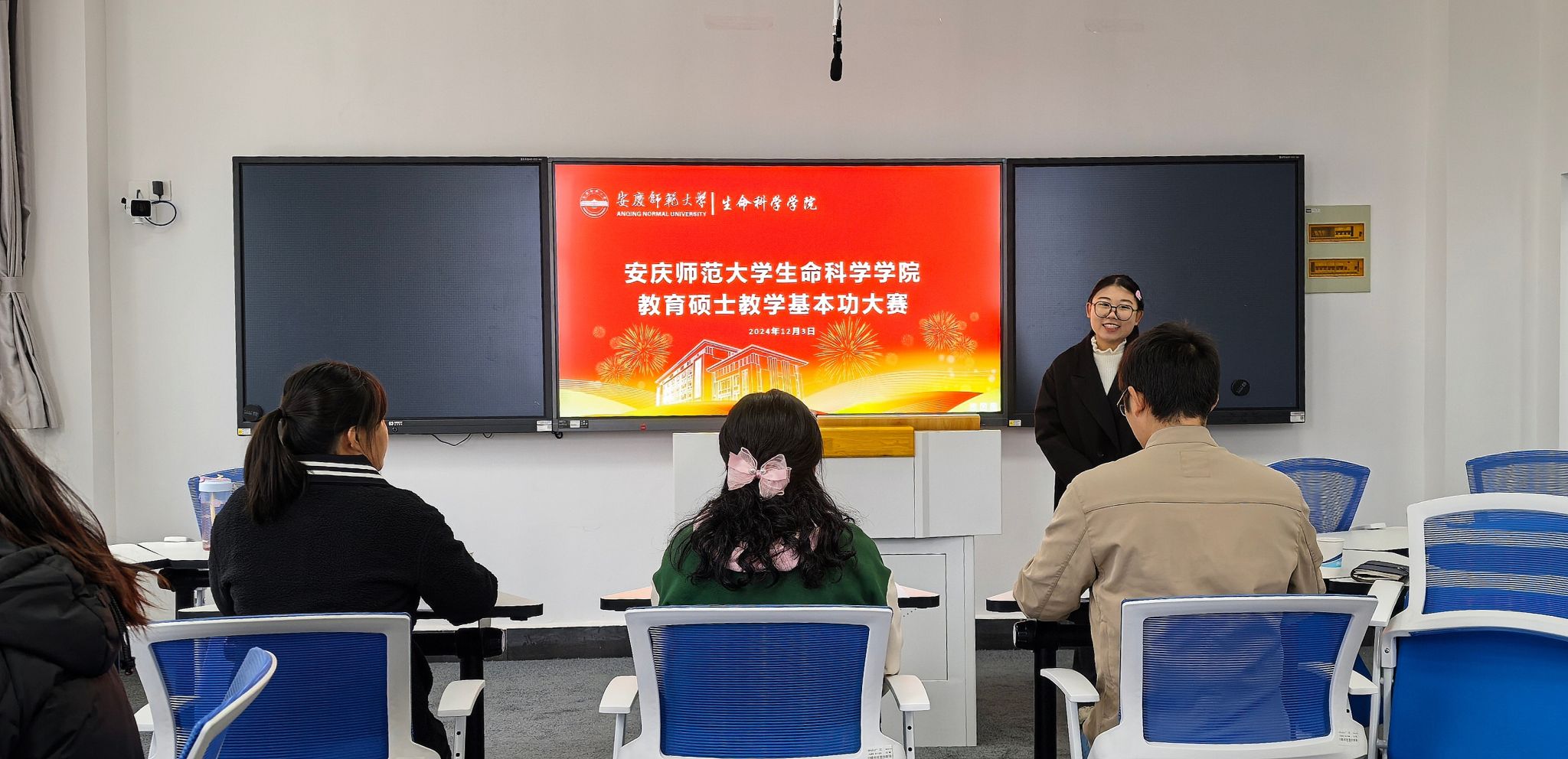 在十分钟的模拟上课中,选手采用传统板书与多媒体课件相结合的方式,配合实物、手工制作的教学模具等元素,向现场的评委和员工进行教学展示。经过激烈的角逐,汤子琳、刘浩然获得一等奖,并获推参加安庆师范大教育硕士教学基本功大赛。