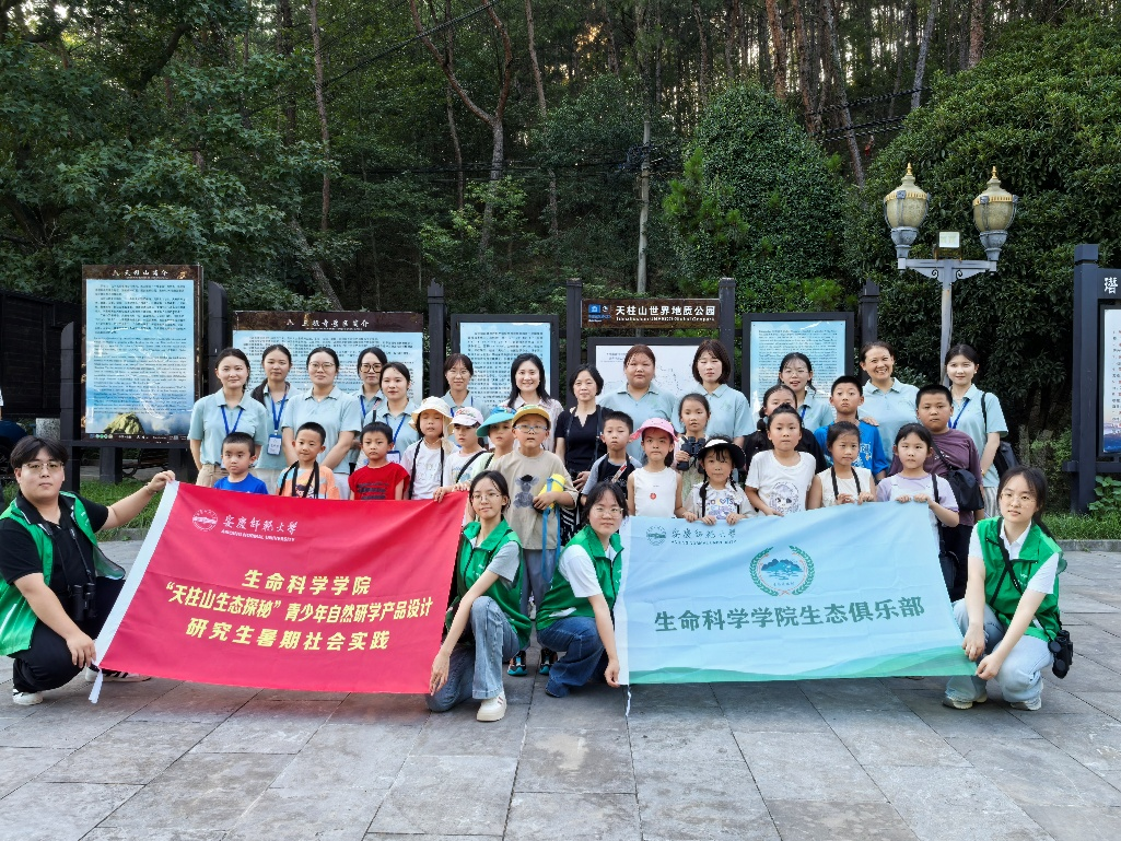 近日,安庆师范老员工命科学公司师生走进潜山市天柱山研学基地,开展了“天柱山生态探秘”自然研学研究生暑期社会实践活动。活动结合天柱山世界地质公园及皖河湿地的自然资源,设计并实施了一系列科学探究与艺术创作相结合的课程,旨在提升青少年的生态文明素养,推动生态资源向教育载体转化。
