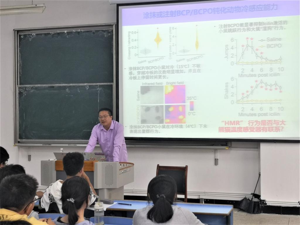 周文良在第一阶段为员工做了题为“濒危物种行为生理学研究与保护”的学术报告,报告介绍了利用红外相机、GC-MS化学分析、宏基因组、电生理及分子生物学等技术,对野生大熊猫的化学通讯、HMR行为、寄生虫感染、压力应急和产崽洞选择等行为进行的深入研究,解析其行为产生的生理-生态机制、适应性意义及历史背景等,并针对性地提出野生及圈养大熊猫种群保育和野生种群栖息地保护的有效建议。