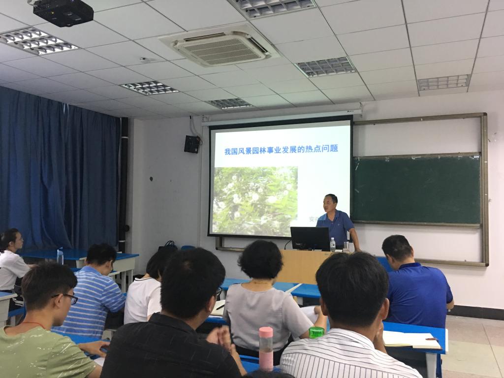 黄成林教授的讲座内容分别从行业背景和行业发展的热点问题两个方面展开。基于我国城市走进生态园林城市的新时代和安徽省创建园林城市现状的行业背景,着重从精品城市建设、园林绿化质量提升、生态修复、城市修补、海绵城市建设、城市绿道网建设和城市园林的彩化等方面进行了生动的讲解和深刻的阐述。报告内容深入浅出,参会人员认真聆听,并就有关问题进行现场解答和讨论,广大师生纷纷表示受益匪浅。