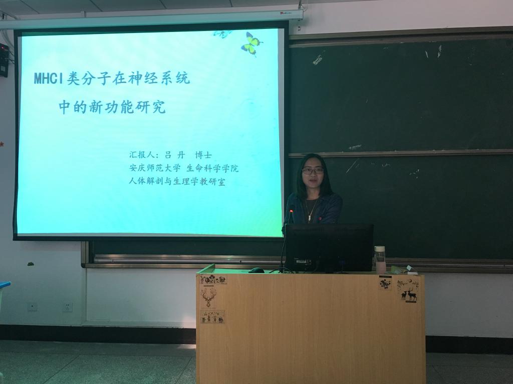 10月31日下午3点半,betway西汉姆联平台吕丹博士在G107教室作了题为《MHC分子在神经系统中的新功能》的学术报告。公司部分专业的师生聆听了报告。